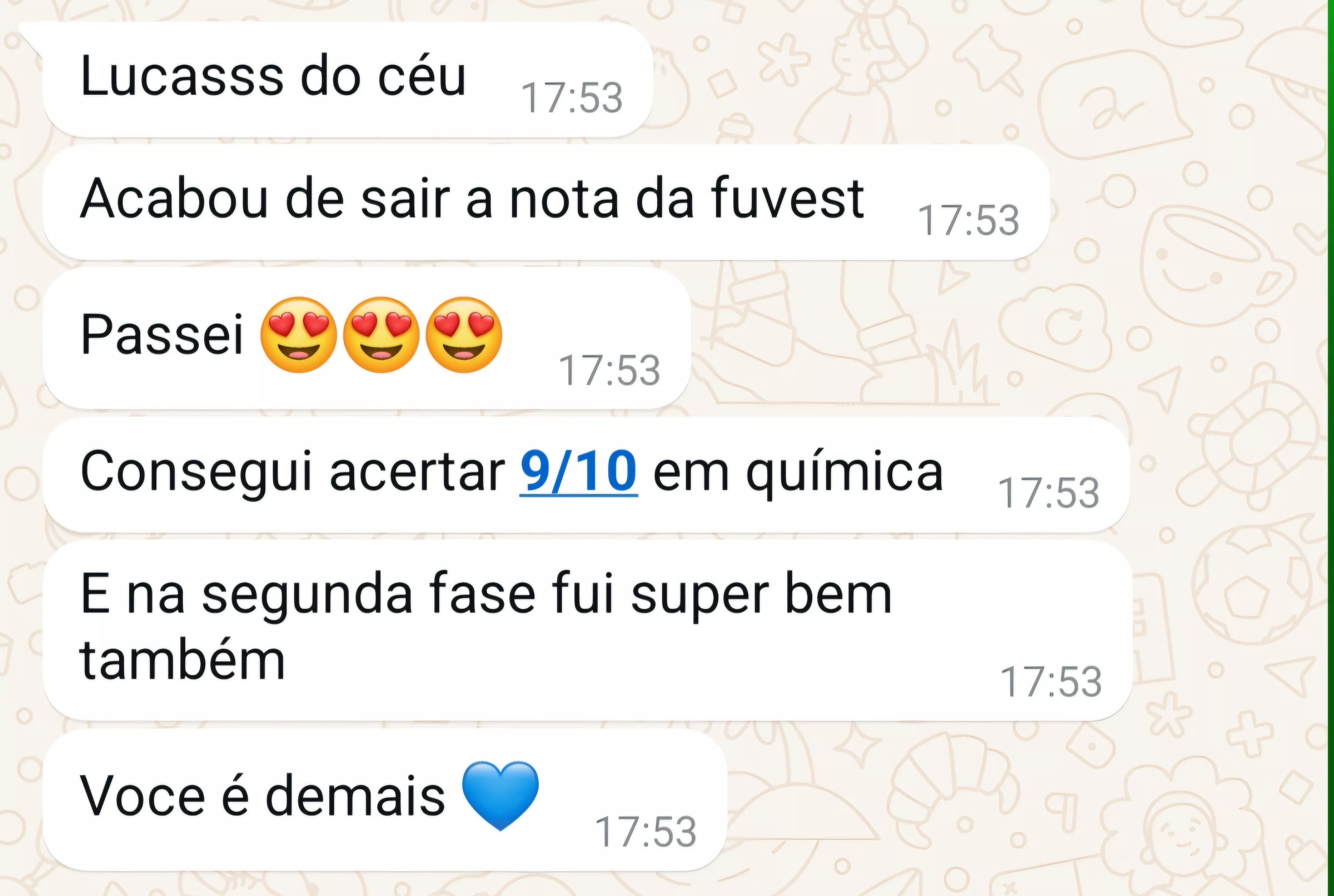 Sou o Lucas Moreno, professor de Química e criador do projeto "Moleculando", com anos de experiência ajudando milhares de alunos a conquistarem suas vagas nos vestibulares mais disputados do país. Meu compromisso é claro: transformar o complexo em simples e fazer você entender, de verdade, os conceitos que caem nos vestibulares.