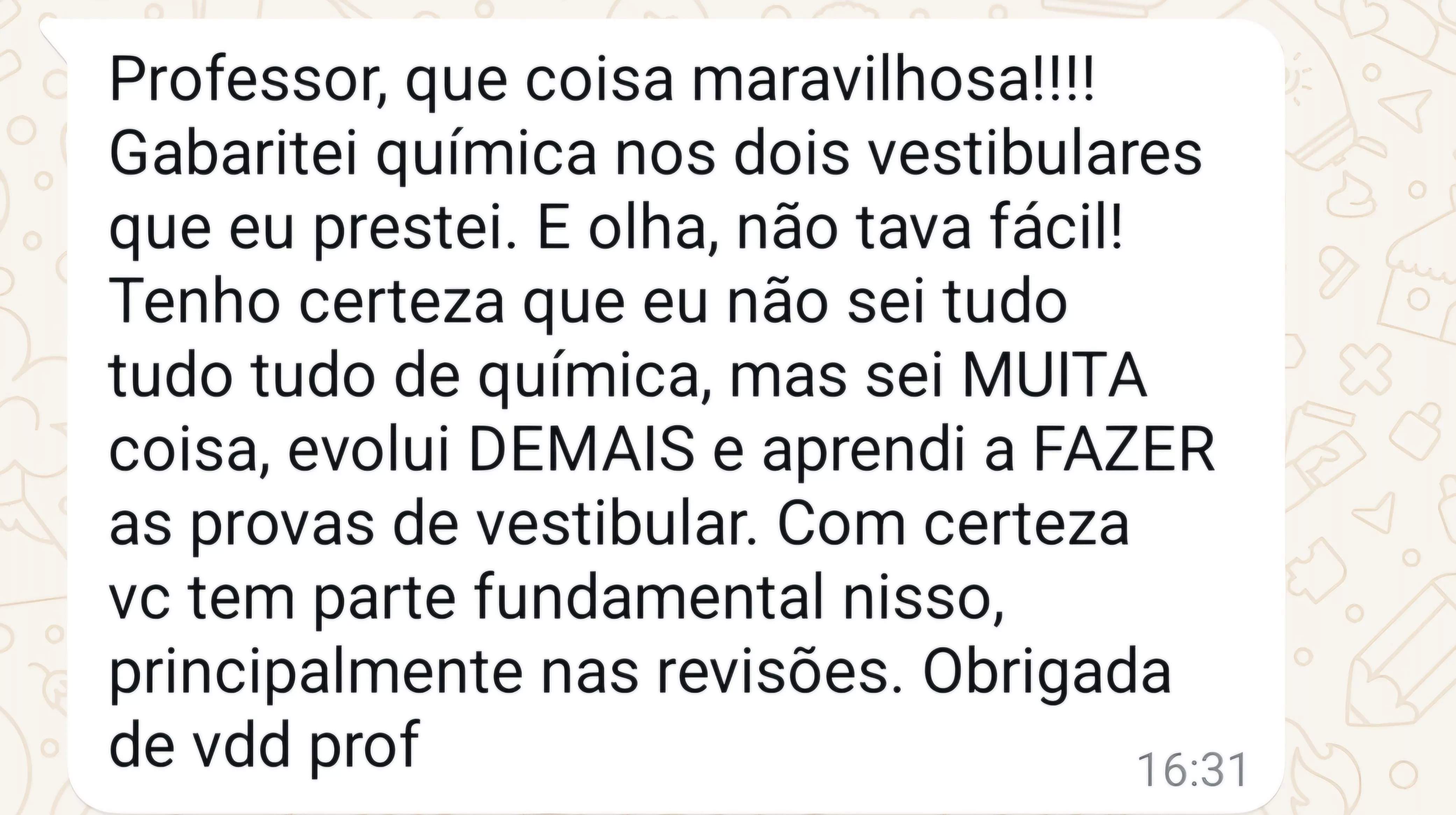 Se você está em busca de uma preparação direta ao ponto, focada em te fazer acertar mais questões no ENEM e que priorize o que realmente é necessário para as provas, está no lugar certo. Aqui, a química deixa de ser algo complicado para se tornar sua aliada rumo à aprovação.